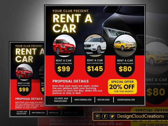 Car Rental Flyer Canva Rental Flyer Template Editable Canva Etsy