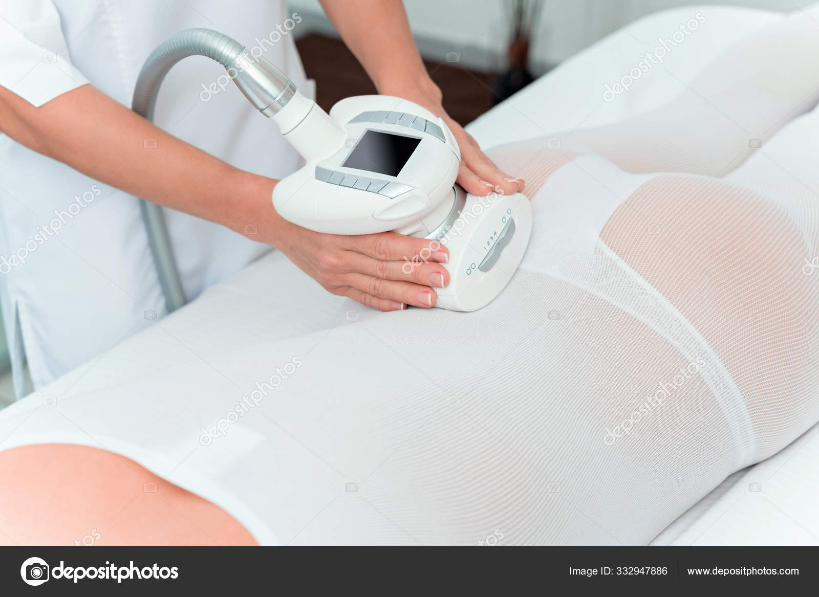 Woman In Special White Suit Getting Anti Cellulite Massage In A Spa Salon Lpg And Body Contouring Treatment In Clinic Stock Photo By C Mariakray 332947886